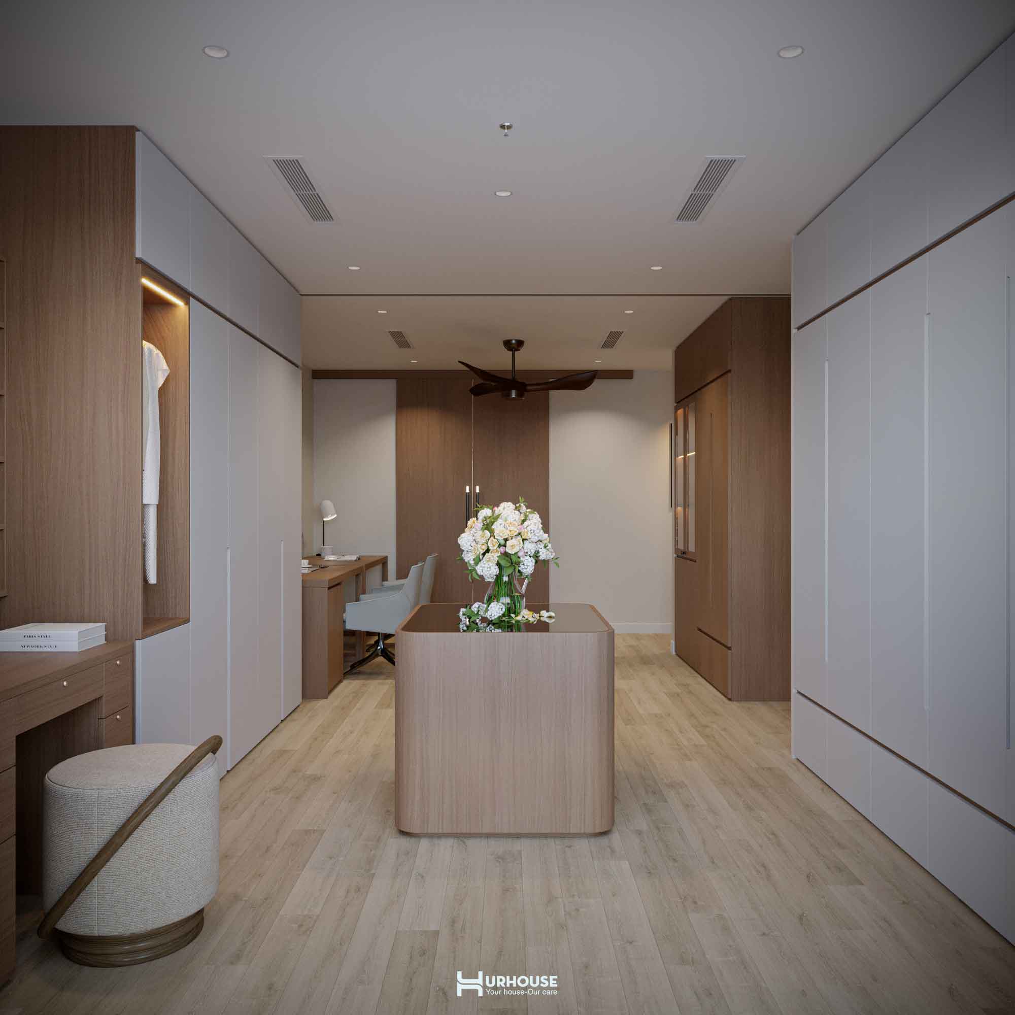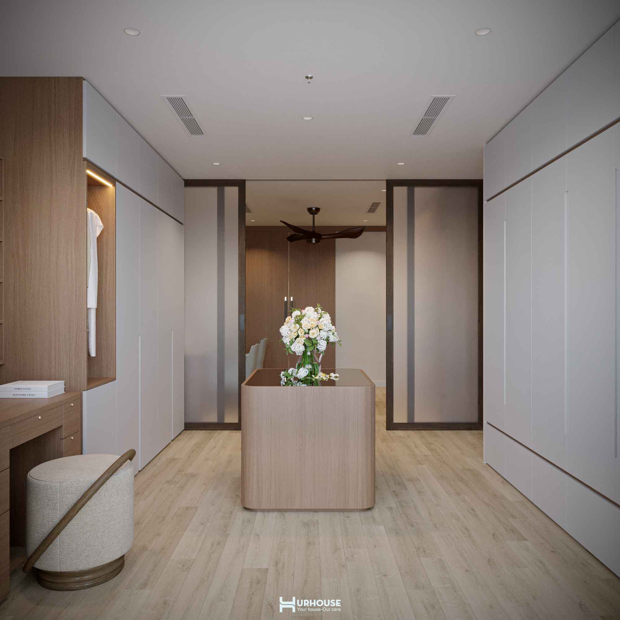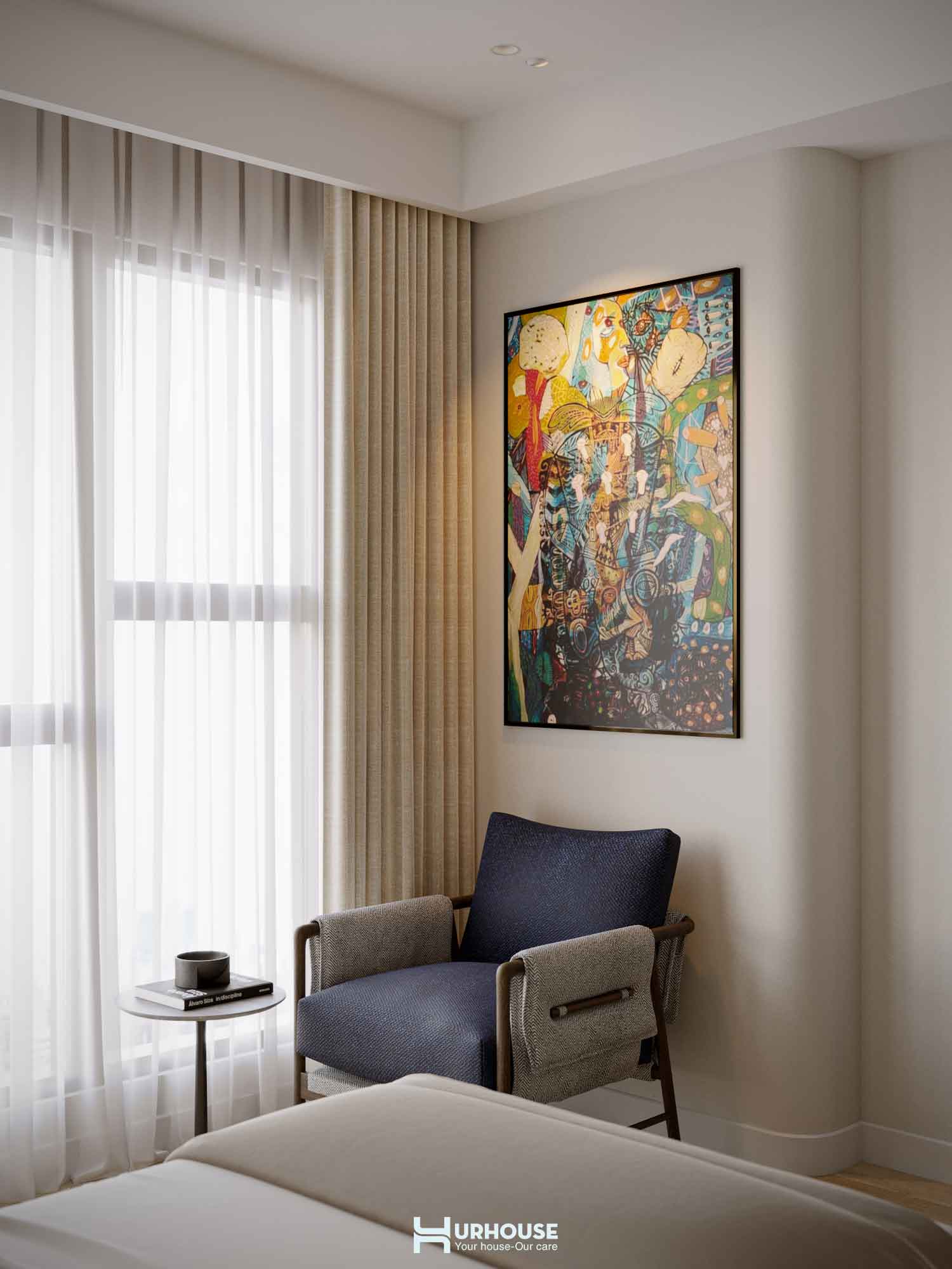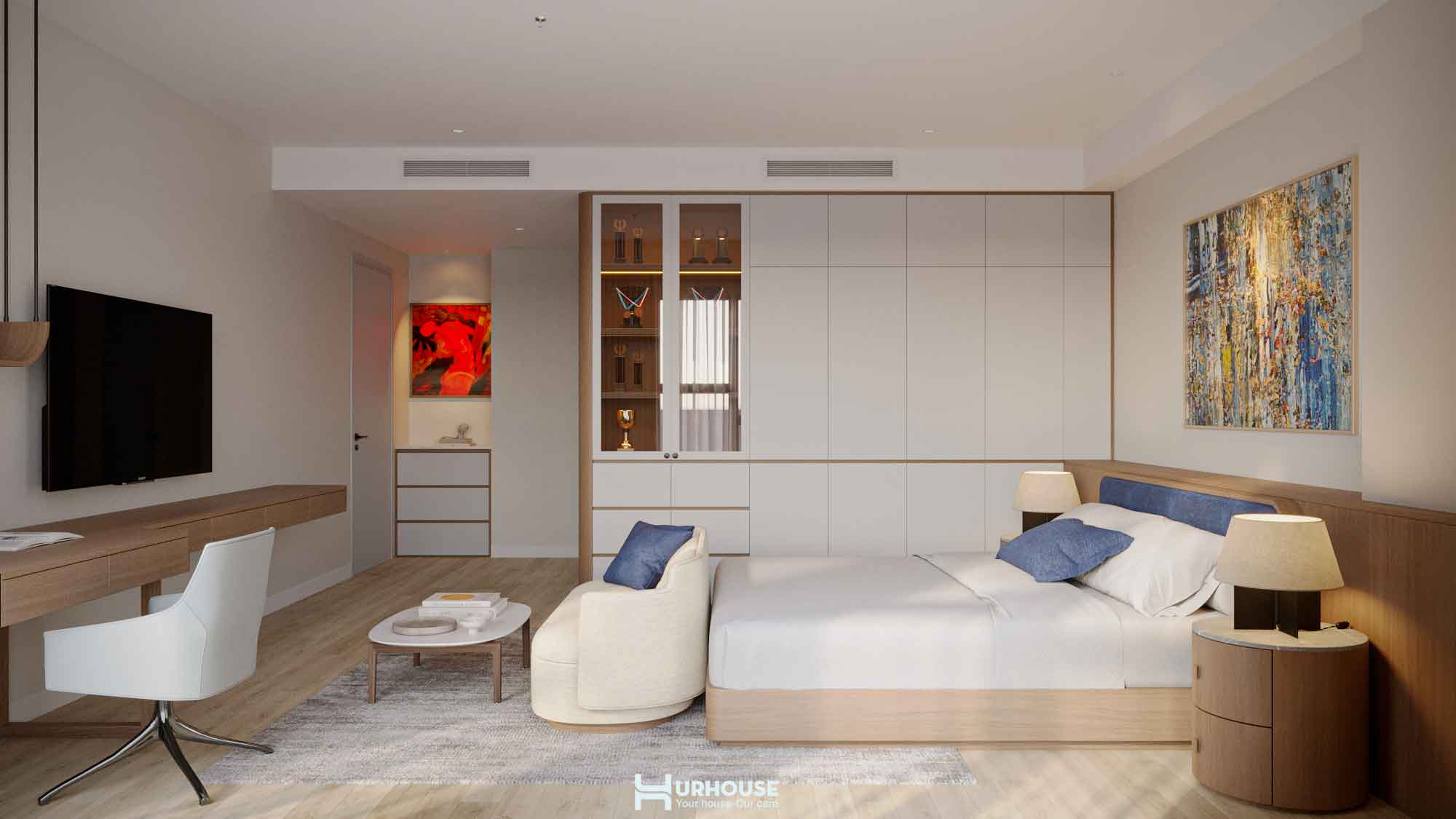 Thấu hiểu những giá trị và sở thích đặc biệt của gia chủ, URHOUSE đã tinh tế đưa những yếu tố ấy vào thiết kế lần này nhằm tạo nên một không gian sống đậm dấu ấn cá nhân. Từ những bức tranh nghệ thuật được chọn lọc kỹ lưỡng đến việc bố trí không gian sao cho được kết nối với nhau, tất cả đều được chăm chút tỉ mỉ. URHOUSE đã khéo léo biến những giá trị vô hình trở thành hiện thực hữu hình, mang đến một không gian sống vừa thanh tao vừa sâu lắng.