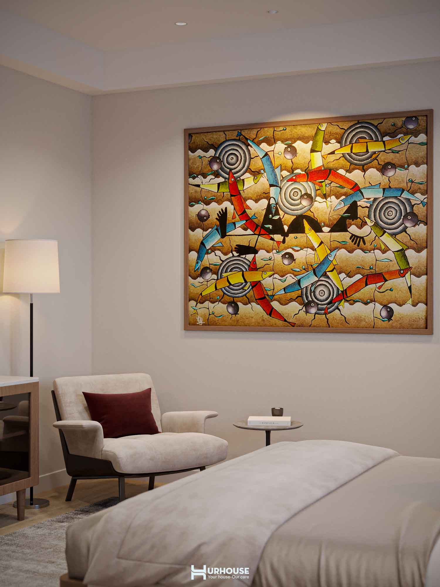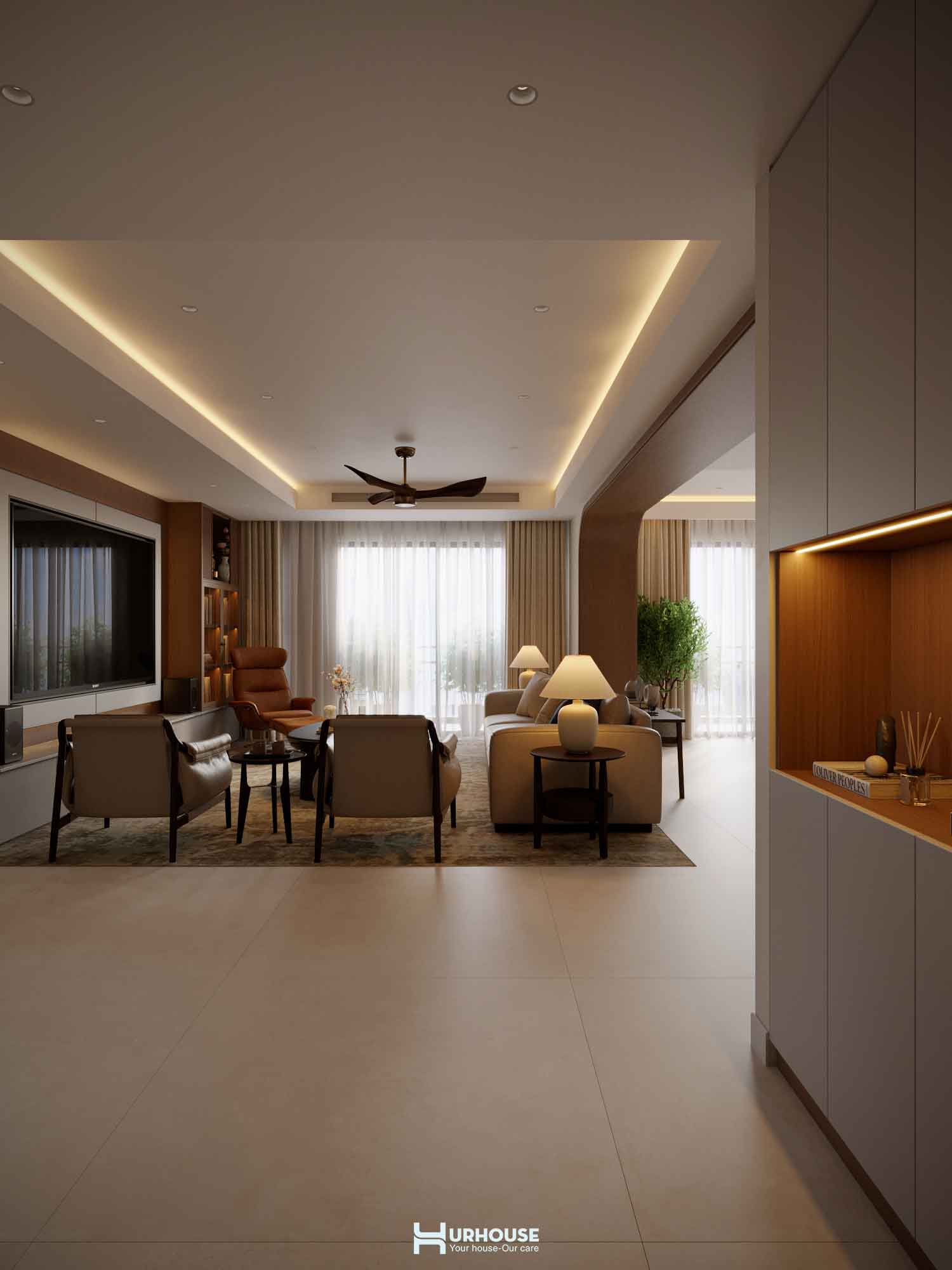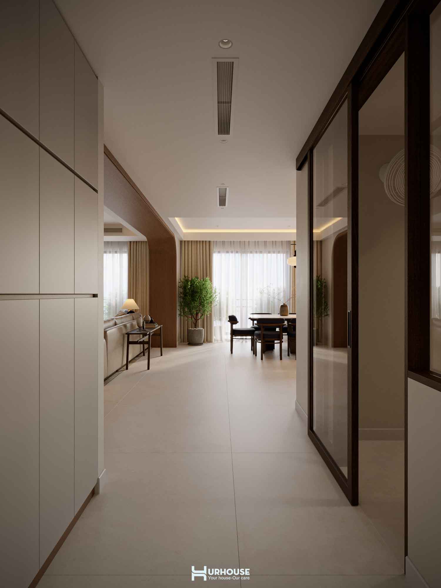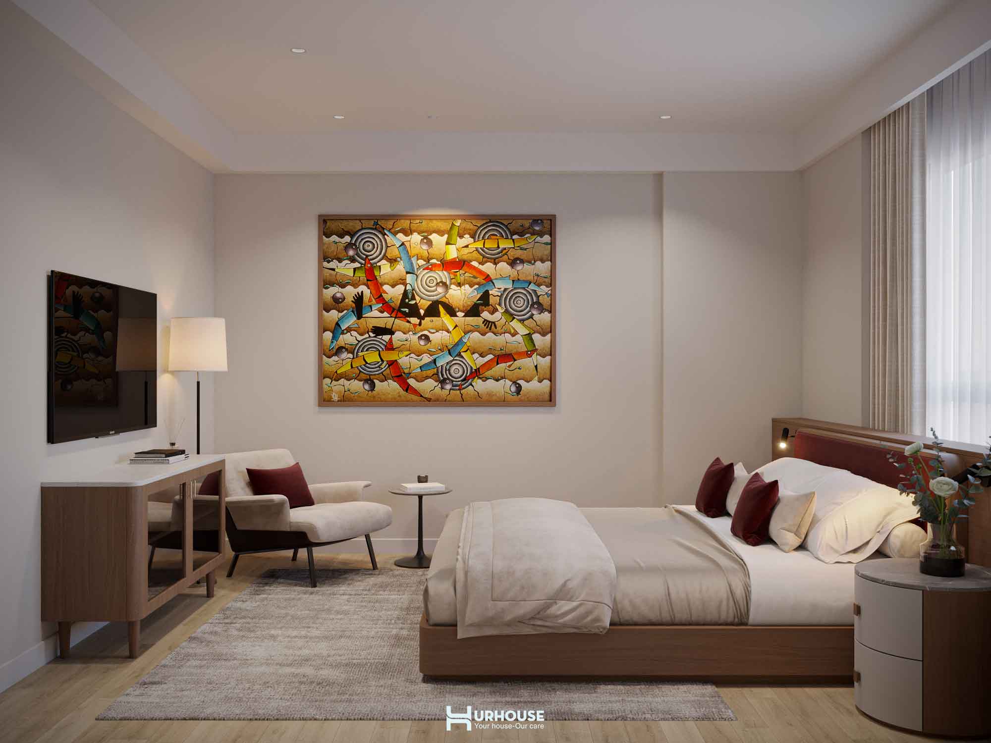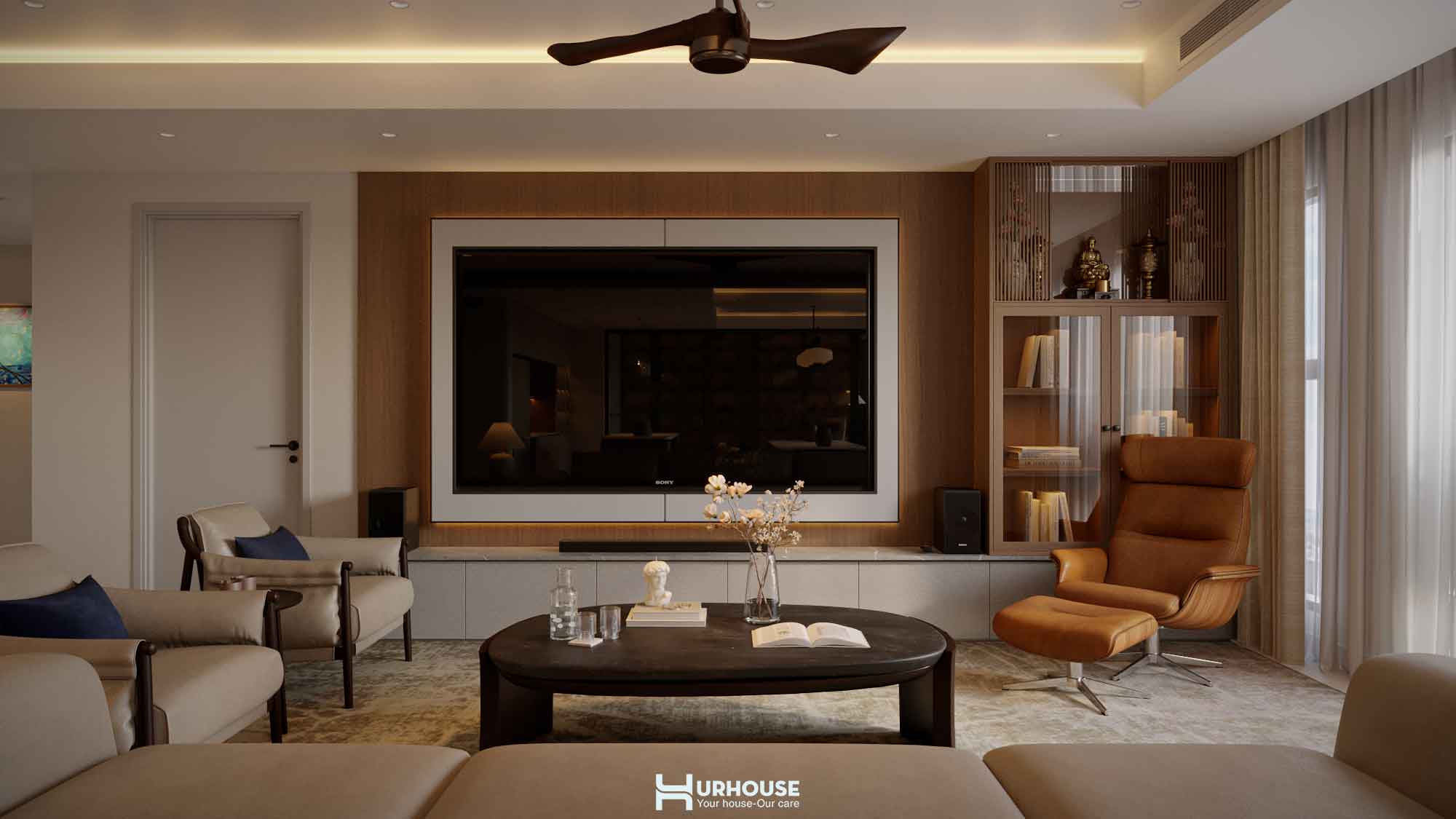 Thấu hiểu những giá trị và sở thích đặc biệt của gia chủ, URHOUSE đã tinh tế đưa những yếu tố ấy vào thiết kế lần này nhằm tạo nên một không gian sống đậm dấu ấn cá nhân. Từ những bức tranh nghệ thuật được chọn lọc kỹ lưỡng đến việc bố trí không gian sao cho được kết nối với nhau, tất cả đều được chăm chút tỉ mỉ. URHOUSE đã khéo léo biến những giá trị vô hình trở thành hiện thực hữu hình, mang đến một không gian sống vừa thanh tao vừa sâu lắng.